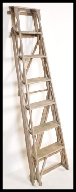 A vintage retro 20th Century Jones Patent ladder of lattice form having graduating steps. Makers plaque to side. Measures 177 cm high