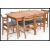 A vintage retro 20th Century teak Danish influence dining table suite with a set of six vintage teak wood chairs. The extending dining table with leaf raised on shaped supports. The set of six rail back dining chairs having black seat pads. Measures 74 cm high x 148 cm wide x 84 cm deep.