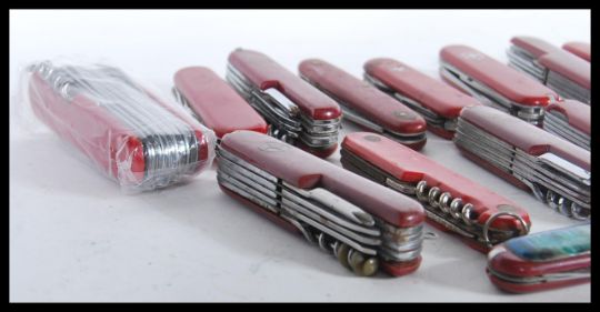 A collection of 20th Century pen knives / pocket knives to include a good selection of red Swiss Army type knives such as Victorinox and others. Longest measures 10cm.