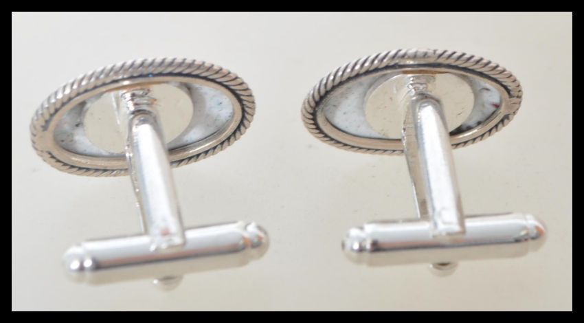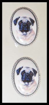 A pair of stamped 925 silver gentleman's cufflinks having oval panels depicting pugs. Weight 9.4g.
