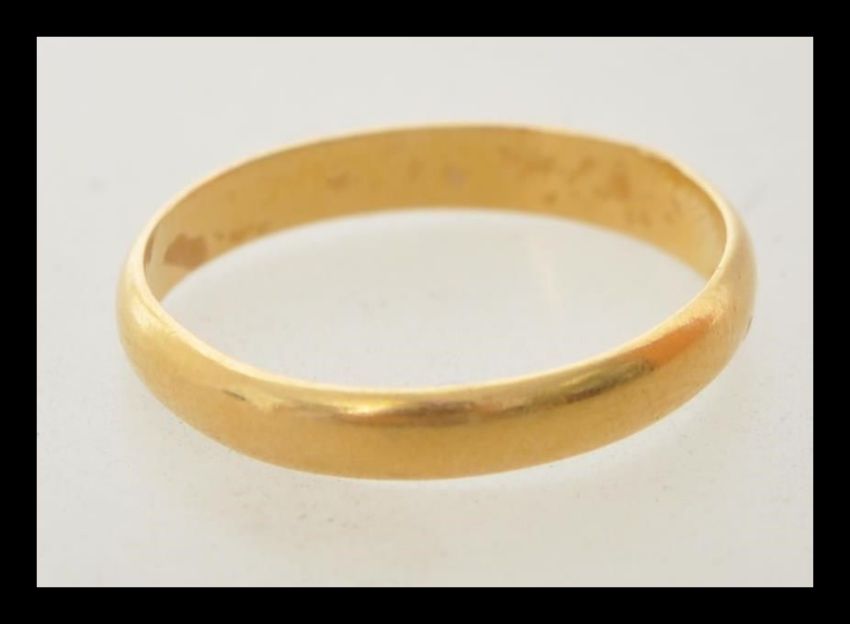 A hallmark 22ct gold wedding band ring. Hallmarked Birmingham 1921. Weight 2.3g. Size N.5.