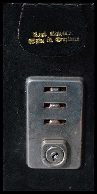A selection of three vintage retro bags to include a brown leather satchel bag by Bosboom, a small black leather crossover bag, a blue leatherette clutch bag and a black leather brief case with multiple compartments. 31cm high by 42cm wide biggest.