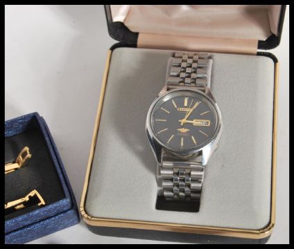 A selection of vintage watches to include a ladies Sekonda yellow metal cocktail watch inlaid with white stones along with a matching bracelet, a Citizen automatic 21 Jewels stainless steel wristwatch and a selection of cocktail watches including sekonda, Paul Franchi, Phillip Mercier, Limit etc.
