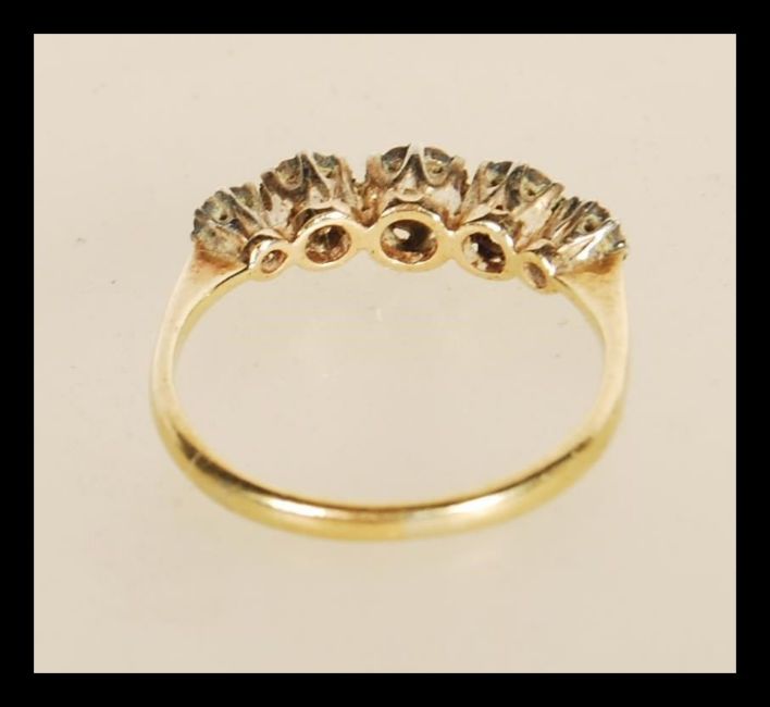 A stamped 18ct gold ring illusion set with five old cut diamonds. Weight 2.5g. Size O.