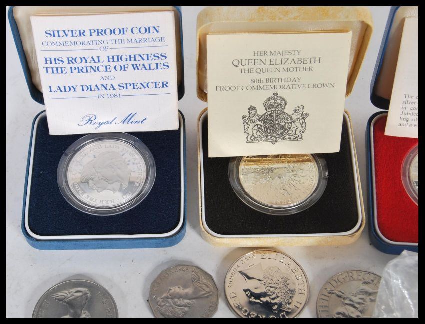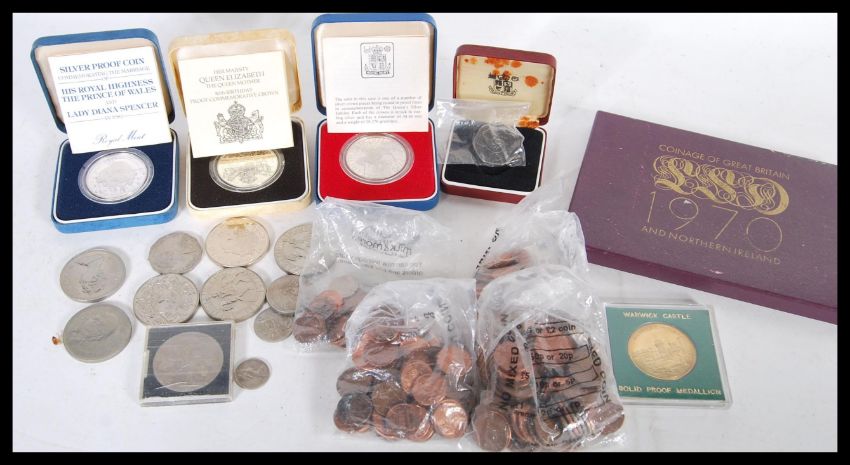 A large collection of pre-decimal coins dating from the 19th and 20th Century to include Crowns, proof coins, presentation coins and others. Good selection.