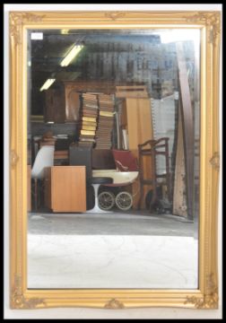 A large contemporary antique style gilt rococo French palace ' Versaille ' floor standing wall mirror. Imperial gilt finish with central large bevelled plate glass mirror in cushion mirror frame surround. Measures: 100cm high x 70cm wide.