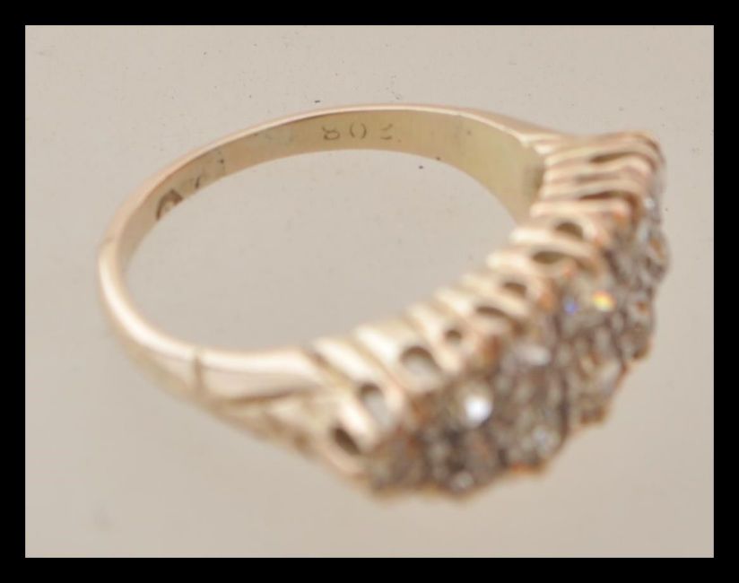 An 18ct gold cluster ring having 12 diamonds illusion set to the head. Estimated 72 pts of diamonds. Weight 4.9g. Size N.5.