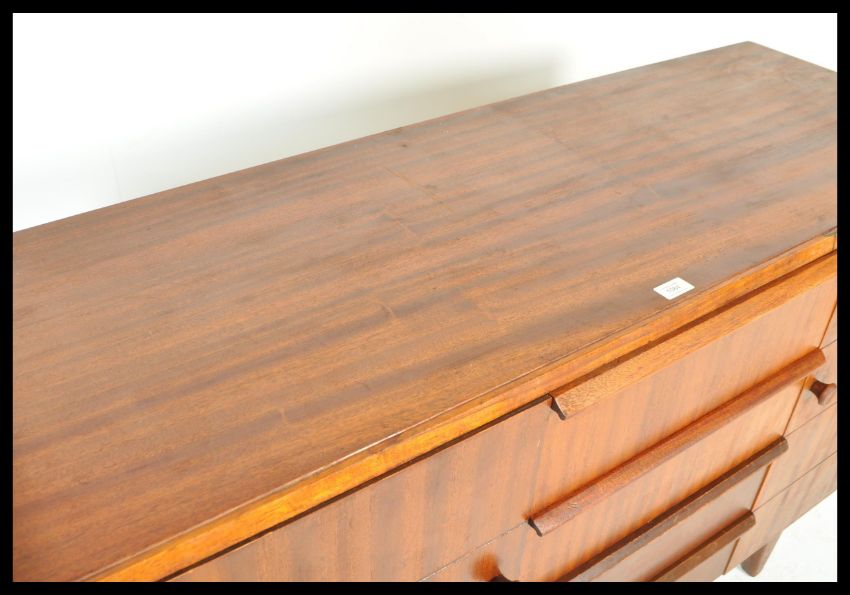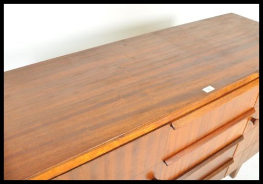 A mid century retro Danish influenced CC41 committee sideboard. Raised on tapered legs with a series of end cupboards flanking a central bank of drawers, all with knob handles. Stamped to verso. Measures: 87cm high x 137cm wide x 49cm deep.