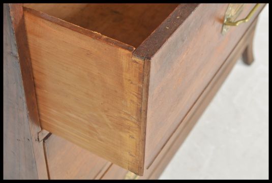 A Georgian 19th century mahogany linen press / wardrobe over chest of drawers. Bracket feet supporting a chest of two short drawers over two long. Double panel door press with slides to the inside, flared edge cornice above.Measures 214H x 118 W x 54D cms.