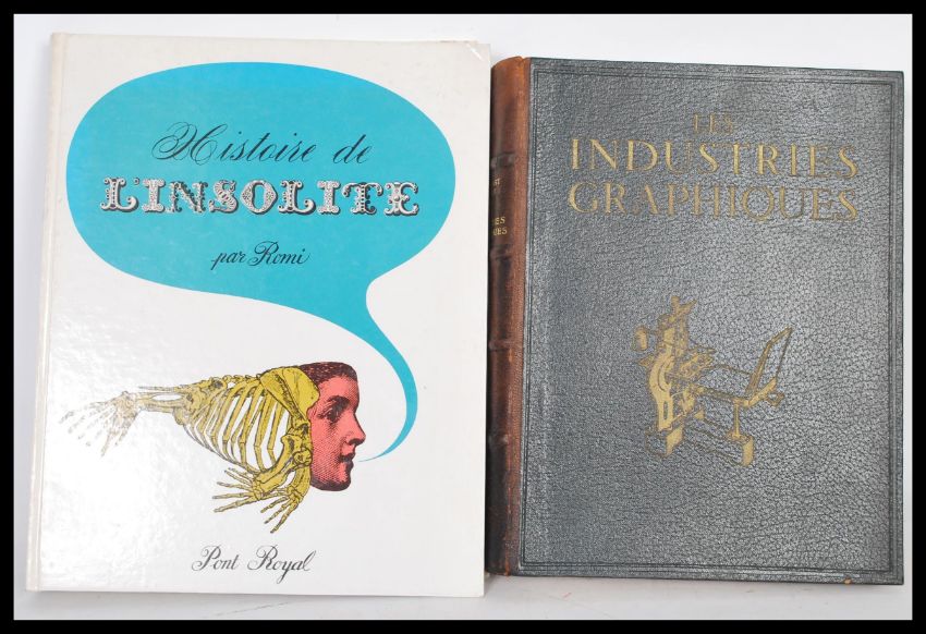 Two French graphic design / art related books to include 'Historie de L'Insolite par Romi' edited by Pont Royal / Robert Laffont, Paris (1964), having many colour plates and 'Les Industries Graphiques' published in Paris by Aux Depens Des Auteurs 1934, with many colour and black and white art work prints.