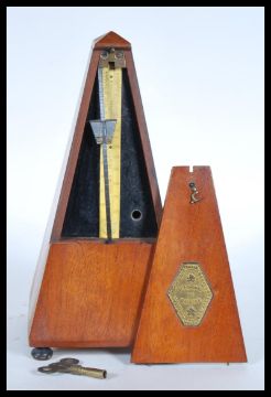 A 20th Century vintage French metronome marked 'Metronome De Maelzel', of typical wooden form, raised on bun feet. Measures 23 cm high x 11 cm wide.