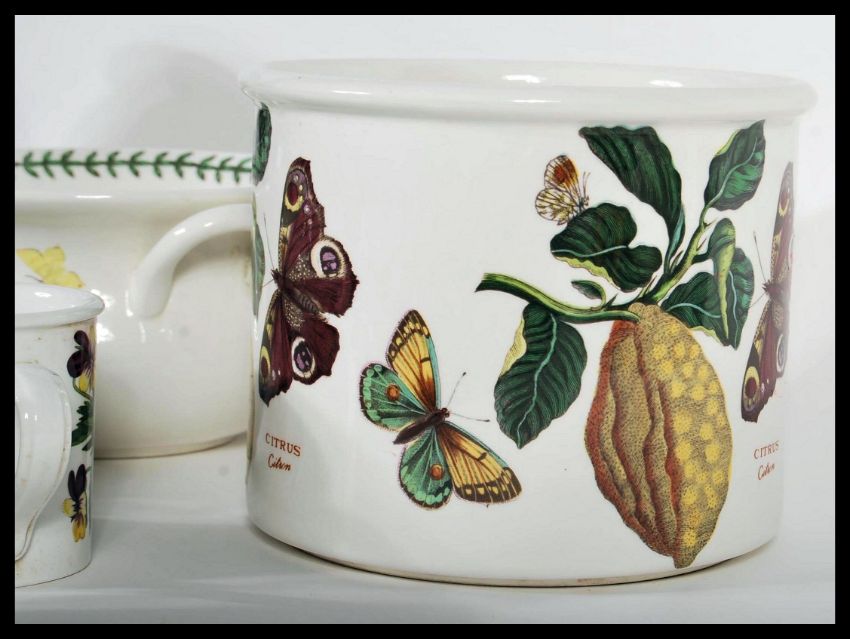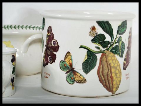 A collection of vintage Portmeirion tea and dinner set ceramics in the Botanic Garden pattering consisting of cups, saucers, vase, lidded pot, dinner plates etc. Each with stamp to base. Tallest measures 17cm high.