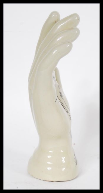 A vintage style Phrenology type Palmistry ceramic hand having instructions to palm. Measures 19 cm high x 14 cm wide.