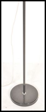 A retro 20th Century floor standing oversized anglepoise style standard lamp, raised on a circular base with pendant shade with an ebonised finish.