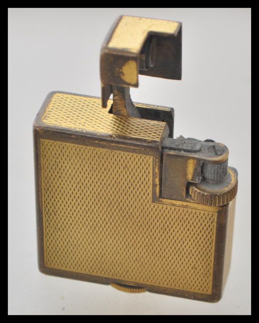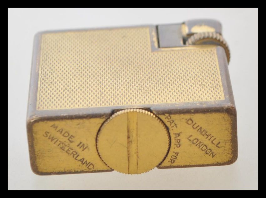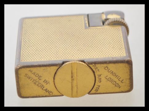 A vintage 20th Century smoking interest Dunhill Monaco cigarette lighter having a gold tone finish along with a red leather Dunhill fob key chain and a leather and brass coin / sovereign holder.