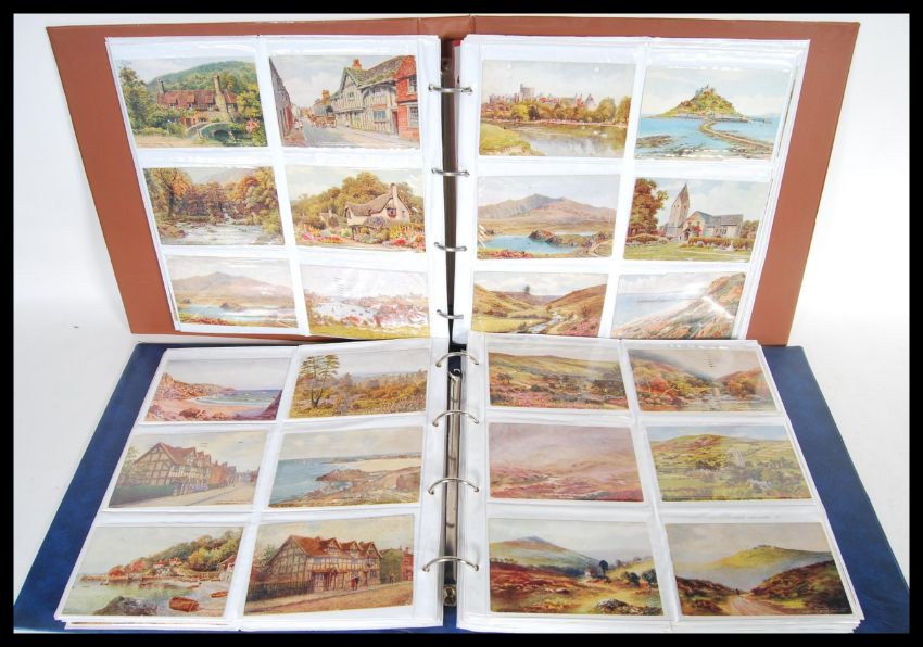 ARQ postcards - Collection of A R Quinton scenes published by Salmon (x145) and Letter Cards (x3). Popular & much collected artist. Also album of other Salmon postcard artists' views (x214).