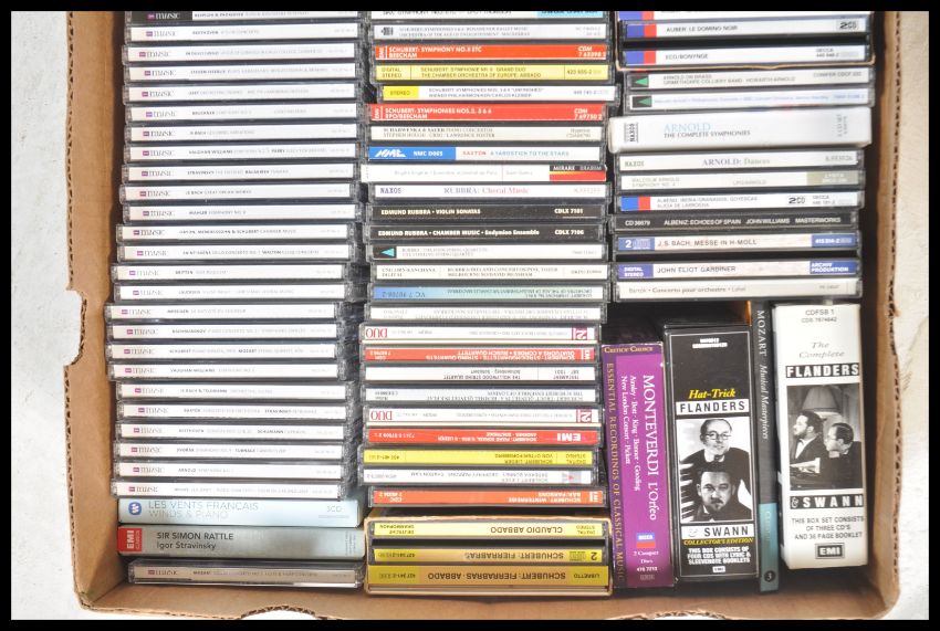 A large collection of classical music compact discs / CD's, featuring various artists and labels within original cases.