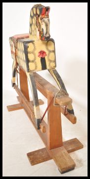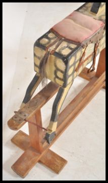 A mid 20th Century childs rocking horse, the rocking horse intricately carved throughout and raised on sleigh runners.