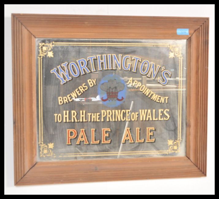 A vintage 20th Century retro pub advertising mirror for Worthington's Pale Ale set within a wooden frame. Measures 51 cm high x 61 cm wide.