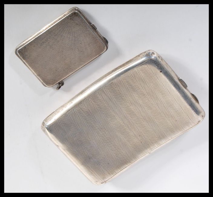 An early 20th Century hallmarked silver Art Deco cigarette case and matching vesta match case bearing identical monograms and both being hallmarked for Birmingham 1930. The cheroot case hallmarked for Josephs Rogers and the vesta case hallmarked for E Mellow. Total weight 162 grams. Measures 9 cm high x 8 cm wide.