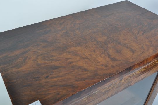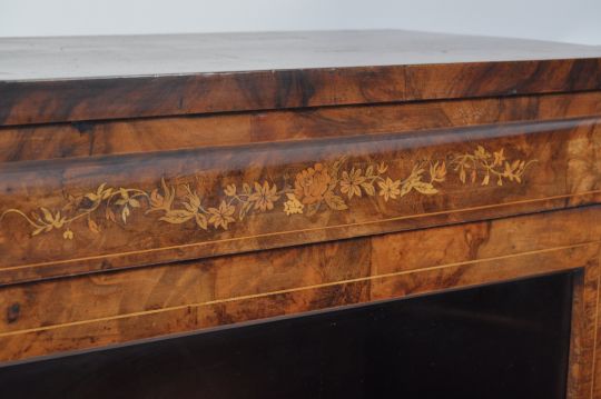 A good 19th century walnut pier cabinet / bookcase. Raised on a plinth base having tall upright body with full length door enclosing shelving set within. The cabinet with stunning shaped chamfered edge detailing. Measures 114cms high x 70cms wide x 30cms depth
