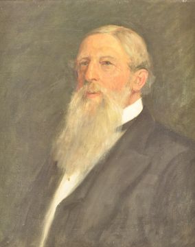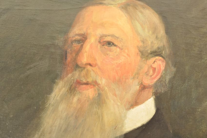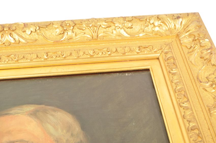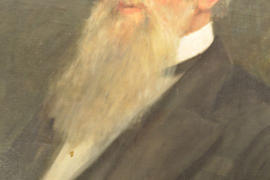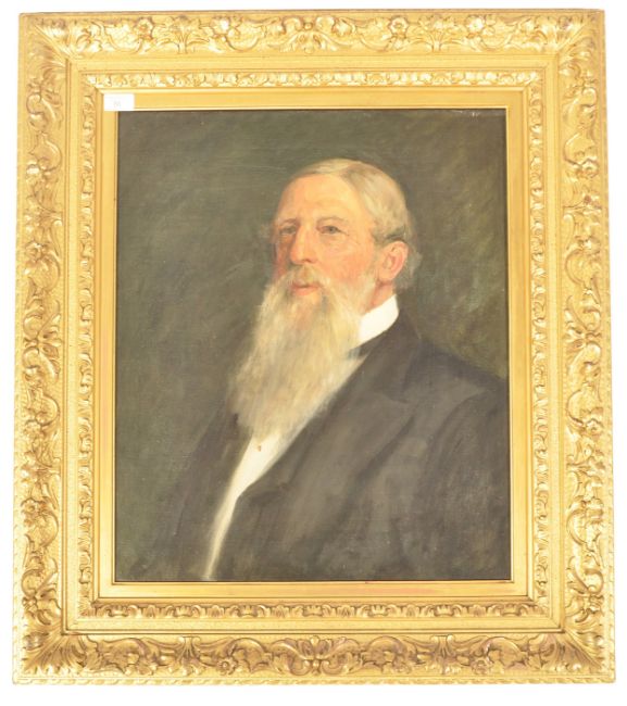 Believed John McLure Hamilton ( Anglo American 1853 - 1936 ) Portrait of Sanford B Dole who led the revolt of which toppled Queen Liliuokalani in Hawaii thus becoming 1st President of Hawaii until the annexation of the island by the United States ( Bayonet Constitution 1893)  Oil on canvas painting being unsigned. Frame measures 75cms x 86cms / canvas 49cms x 60cms. Canvas marked for Cornelissen of London where John McLure Hamilton was known to buy art supplies. Mclure Hamilton being well noted for painting figures of note both American and English  (Hamilton was a member of the American Federation of Arts, the Royal Society of Portrait Painters and the Senefelder Club, London. His portraits are found in the following galleries; Luxembourg Museum, Paris, (which is devoted to artist's foreign to France), the National Portrait Gallery, London and the Pennsylvania Academy of Fine Arts,[2] which awarded him its Gold Medal of Honor in 1918. Lot 56 is a painting also believed to be the hand of John McLure Hamilton and the sitter believed to be the stepmother of Sanford B Dole, Charlotte Close Knapp. His father Daniel Dole remarried after the death of his mother just after the birth of Sanford.  Both paintings consigned from the same house, this painting also unsigned but with markings for Cornelissen.