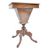 A 19th century Victorian flame mahogany trumpet shaped ladies workbox table. The hinged top opening to reveal sectional interior. All raised on tripod splayed legs with tapering column centre. Measures 73cms high x 48cms wide x 36cms depth