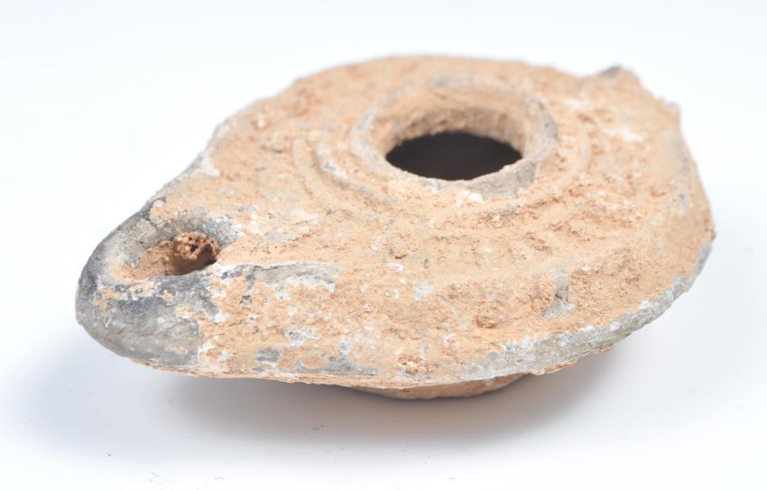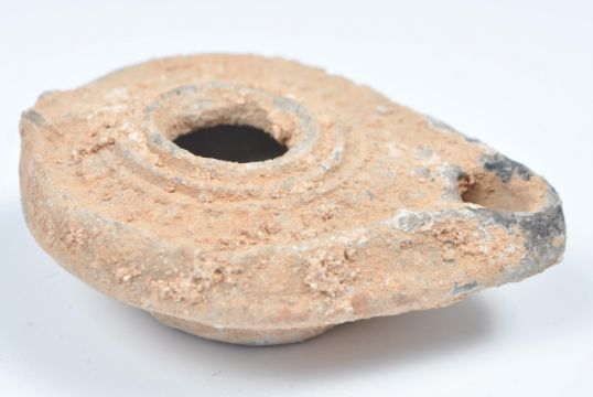 Roman antiquities - Two ancient Roman oil lamps to include a terracotta lamp having a discuss decorated with circular motifs and a larger pottery lamp having ribbed decoration. Largest measures 10cm long Please note the photographs of the letters are included as reference only and are not included in this lot. From the collection of Trevor James Brown who was given permission to enter the tombs in 1919. Trevor also wrote a manuscript on the theory of the Theobs.