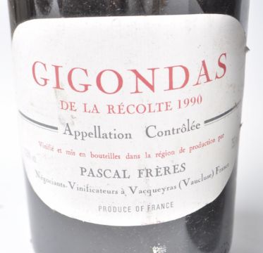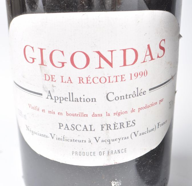 Five bottles of 1990  Pascal Freres  Gigondas De La Recolte - Appellation Controlee - Negociants Vinificateurs Vacqueyras ( Vaucluse ) France 750ml 13.5% vol