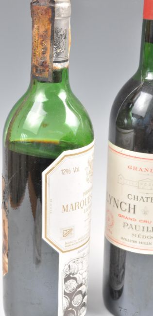 A Vin De Bordeaux Reserve De Monsieur Louis 95339, a bottle of 1970 Chateau Lynch Bages Grand Cru Classe Pauillac Medoc and a 1984 bottle of Marques De Riscal Rioja  and another