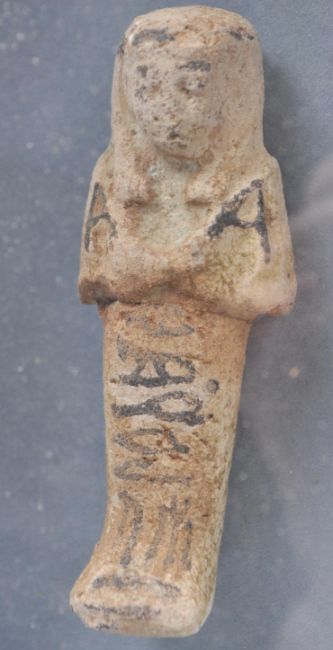 Ancient Egypt - A collection of three Egyptian Ushabti funeral statuettes to include two small faience figures with painted hieroglyphics and a larger example with painted head dress and hieroglyphics dating from the new kingdom circa 1500 BC. Framed and glazed, frame measures 34 cm x 35.5cm. Please note the photographs of the letters are included as reference only and are not included in this lot. From the collection of Trevor James Brown who was given permission to enter the tombs in 1919. Trevor also wrote a manuscript on the theory of the Theobs.
