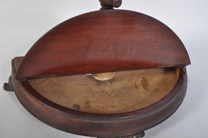 A 19th century High Victorian mahogany ladies dressing table vanity mirror. Raised on paw feet and demi lune hinged base having a telescopic adjustable mount with circular adjustable mirror atop. Measures 82cms x 57cms