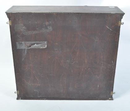 A 19th century mahogany and line inlaid cabinet in the manner of George Bullock ( 1777 -1818) The mahogany two door cabinet having an ebony wood inlaid detailing of diamond lozenges and scroll work to the full length doors housing shelves set within. Simple flared pediment above. Measures 66cm x 72cm x 21cm