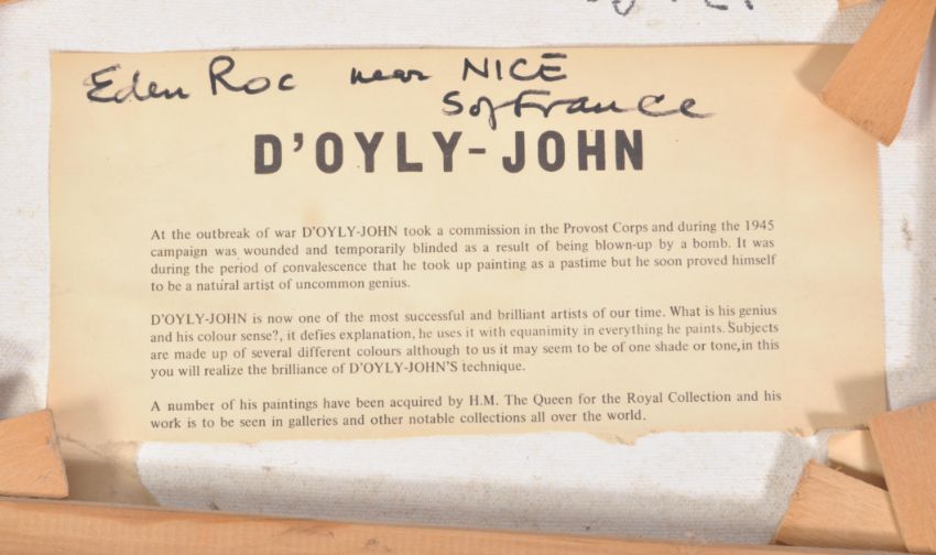 ARTISTS RE-SALE RIGHT. Buyers of the re-sold art of living artists will be charged the royalty where applicable. Currently this is 4% on any item sold at 1000 Euros or over, diminishing about 50,000 Euros. VAT is not applicable. Further details can be obtained from our office.