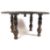 A vintage late 19th / early 20th century oak panelled shield wheel with steel frame and hub being converted into a large centre / coffee table being raised on turned mahogany baluster legs. The wheel having mould markings to the hub and riveted to the wooden panels.