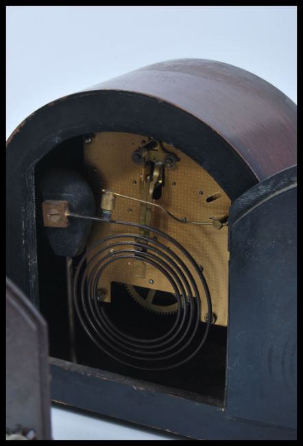 A group of five vintage early 20th Century mantel clocks to include three oak cased examples and two Smiths bakelite examples.
