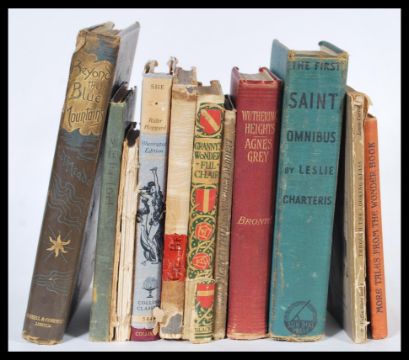 A collection of vintage books to include 'Beyond the Blue Mountains' by L. T. Meade published by Cassell and Company Ltd (1893), ' Faithful Pollie ' by Jessie Challacombe published by the Society for Promoting Christian Knowledge, ' The Bear's Kingdom A Fairy Tale ' by Eva C. Rogers published by the Sunday School Union, ' Granny's Wonderful Chair ' by Frances Browne published by Blackie & Son, ' Through the Looking Glass and what Alice Found There ' by Lewis Carroll with fifty illustrations by John Tenniel published by Penguin Books and Wuthering Heights and Agnes Grey by Emily and Anne Bronte published by R. E. King & Co, and others.