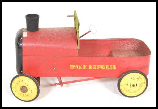 A vintage 20th Century Triang Duke Express pedal car / go kart in original painted finish with label. Measures 45 cm high x 35 cm wide x 75 cm deep.