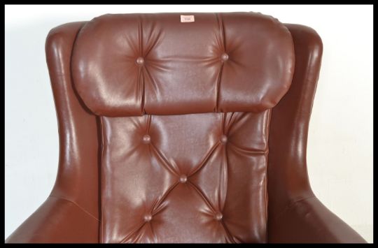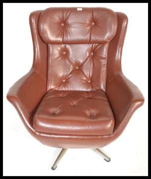 An original 1960's retro vintage button back swivel egg type chair / armchair being raised on a five point splayed chrome support base.