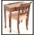 A 20th Century Georgian Style Regency Revival flame mahogany inlaid writing table desk with breakfront centre top raised on square tapering legs with spade feet. Together with a single chair. Measures 76 cm high x 75 cm wide x 37 cm deep.