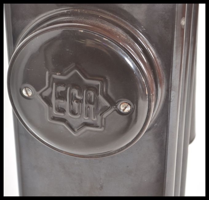 A vintage 20th Century industrial French enamel radiator, applied makers badge. Measures 102 cm high x 36 cm wide and 20 cm deep.