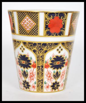 A Royal Crown Derby trembleuse tall cup and saucer in the Old Imari pattern with gilt detailing and red and blue floral decoration. No. 11128. Measures 10cm height.
