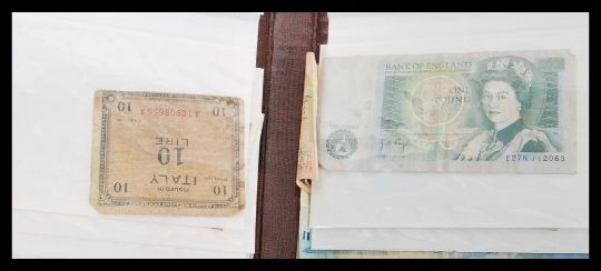 A good collection of vintage 20th Century all world bank notes and currency to include Great Britain £1 One Pound note, various Brazilian Brasil notes, Portuguese Portugal notes etc. All within an album.