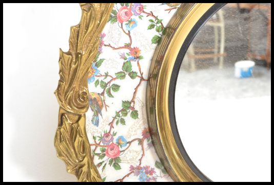 An early 20th century Burleigh Ware ceramic charger, ormolu gilt surround hand painted with birds and flowers having central mirror panel.