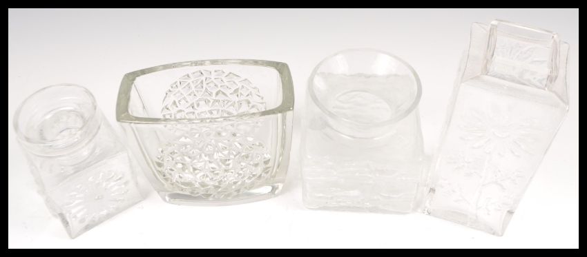 A group of four vintage retro 20th Century clear studio art glass vases to include three Frank Thrower for Dartington examples.