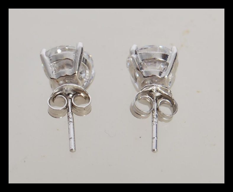 A stamped 925 silver necklace with a prong set cz pendant and a pair of matching silver and cz earrings. Weight 6.2g. Chain measures 20 inches.