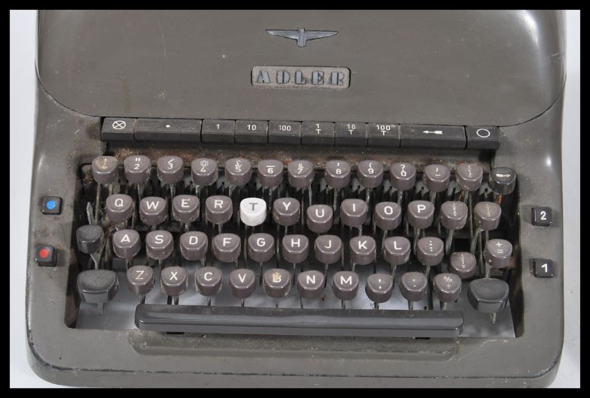 Two vintage retro 20th Century industrial typewriters to include an Adler example and a smaller Scheidegger Princess matic portable example.