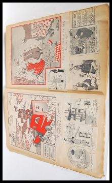 A charming vintage 1950's scrapbook filled with newspaper / comic book cutouts / cuttings - all of comic book theme, including novelty advertisements and comic strips. Measures 41 cm high x 28 cm wide.