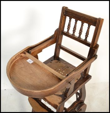 A 19th century Victorian beech walnut and iron bound metamorphic child's chair.