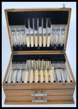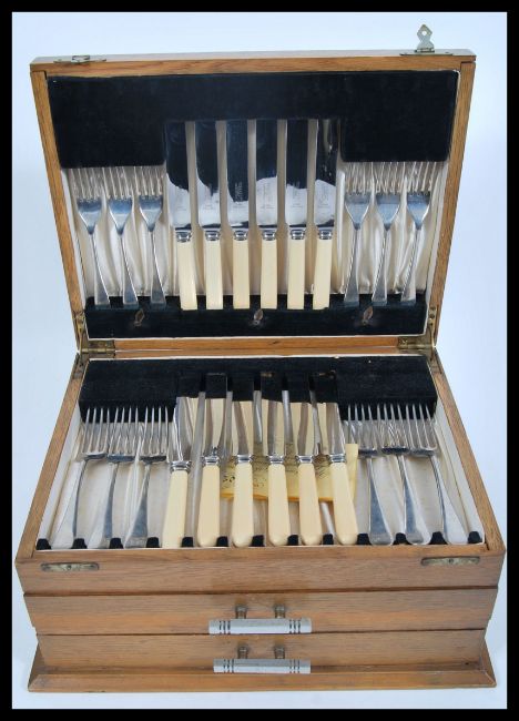 An extensive Viners twelve person silver plated canteen of cutlery in the Old English pattern complete in fitted flatware case.  Measures 18cm high x 38cm wide x 29cm deep.